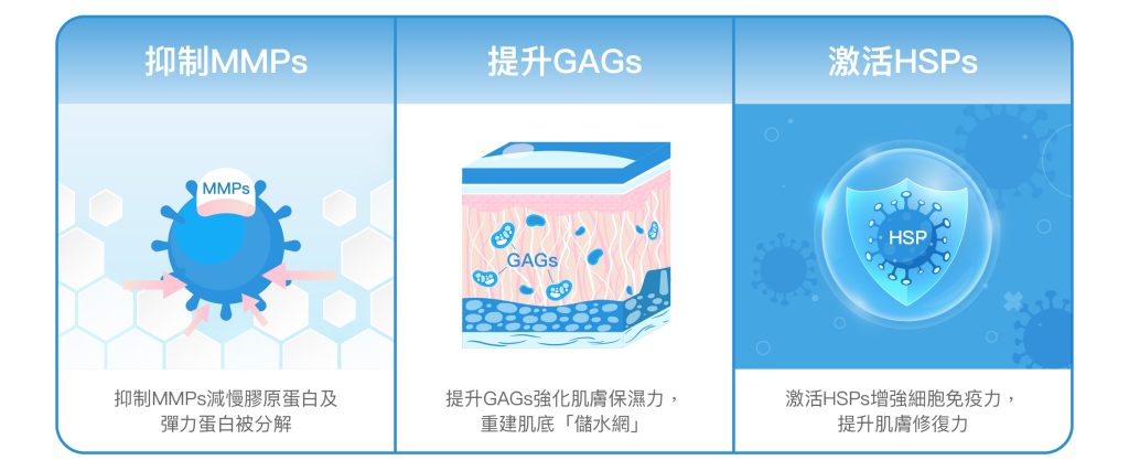 LDM水滴提升可以說是從源頭延緩肌膚老化、改善肌膚抵抗力。LDM超聲波能力能平衡細胞外基質 (Extracellular Matrix, ECMs),調節分解基質金屬蛋白酶 (MMPs) , 提升糖胺聚糖 (GAGs) 及熱休克蛋白 (HSPs) 的產生,從而達致修復細胞、抑制炎症、激活細胞再生能力。