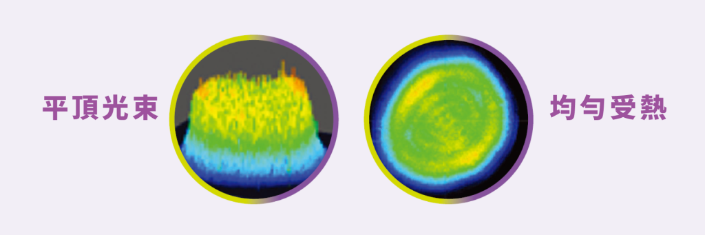 (1)平頂光束:C6激光的擴散角極小,使能量均勻分佈在皮膚表面,大大減低能能量分佈不均所引致的表皮損傷。